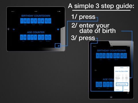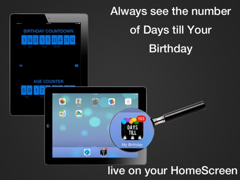 When you open the app youll see a counter that keeps track of the number of days, hours, minutes and seconds until your birthday.