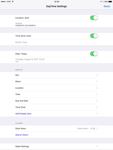 DayTime brings the sundial into the twenty-first century. Using your location, DayTime calculates the position of the sun, the length of your day and the exact times of sunrise and sunset, and optionally, moonrise and moonset. DayTime works worldwide, so you aren’t limited to tracking the sun at home. Whether you’re planning your vacation for postcard-worthy sunsets and moonrises or just making the most of the daylight hours, it’s never been easier than with DayTime.