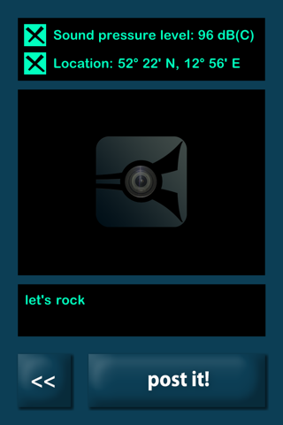 Measure the sound of your environment and share it directly via facebook – your friends will know how loud you had it! You can post your geodata and add a picture - take it directly or chose one from your photo library! And you can add a comment to tell your story...