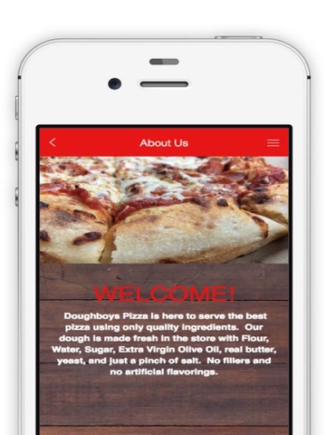 When youre hungry, the last thing you want to do is wait on hold, repeat your credit card number and get disconnected. With the Doughboys Pizza app, ordering to-go has never been easier. All you do is order your favorites, share any special instructions and even tip in seconds. Plus, all of your orders will be saved in your profile for future reference.