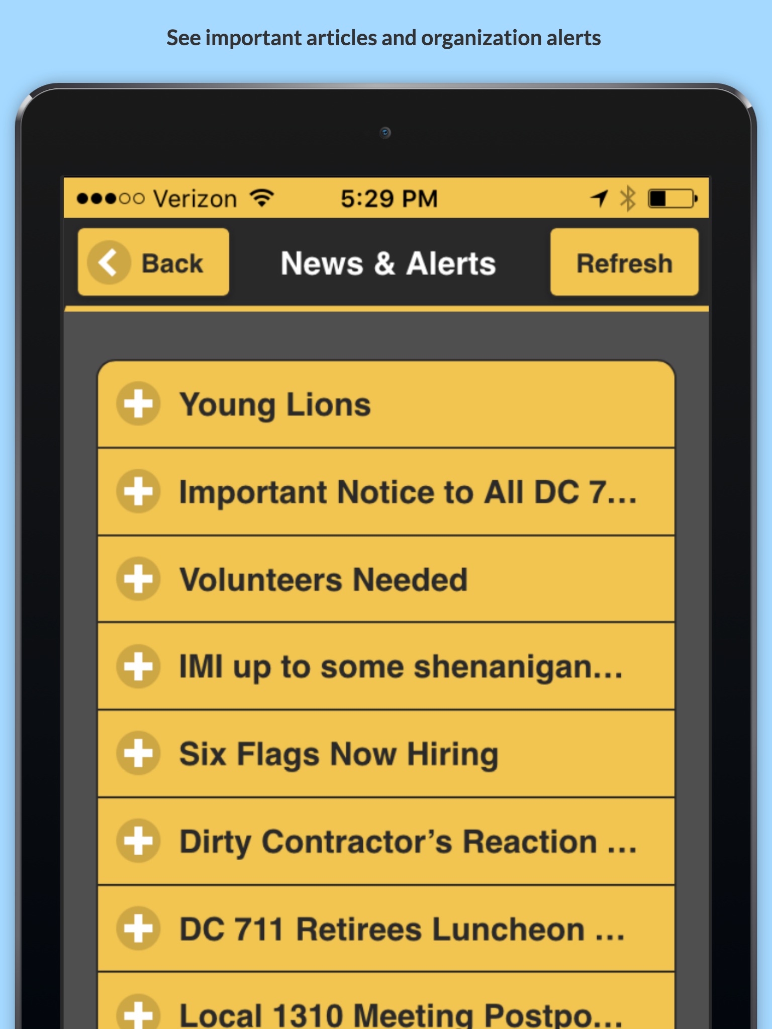 This application has been created for the members and prospective members of DC 711. It allows the public to keep up to date on the news of the organization, upcoming events, meeting time changes, necessary forms or applications to be submitted and to receive push notifications from the organization.