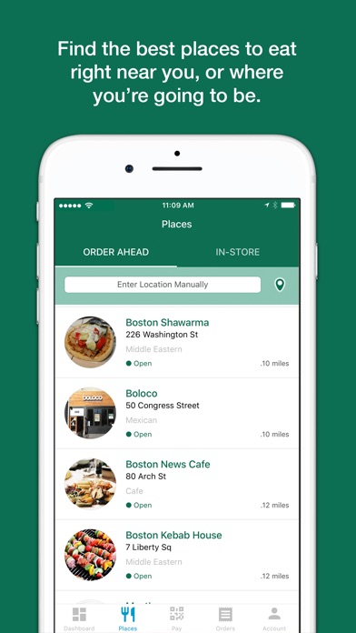 Dashboard – Quickly access the most commonly used features such as viewing your last order, ordering ahead, and paying right away.