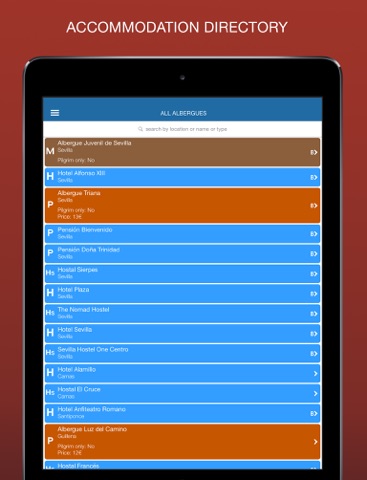 Accommodation Directory: A full directory of Albergues, camping, hotels, pensions, paradors, and cases rurales. Over 900 in total, with special attention to those that can be booked online.