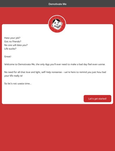 De-motivate Me is an iPhone/iPad App that delivers daily de-motivational tips and hints designed to lower situations of high self-esteem and excess narcissism by bringing you firmly back to reality.