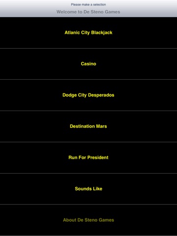 This app has six classic text games with sounds and music, and it is fully accessible with Voice Over. The six games were originally developed by Richard L. De Steno, and were very popular with people who were blind or had low vision back in the 90s. A blind person would use a screen reader, which is a piece of software that allowed a person who was blind or had low vision to play these games just like a sighted person. Here is a description of the six games.