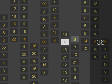You are on a number. When you tap your screen you advance to the next number. If it is a divisor (or your number divides the next one) then you score points; if it is not a divisor then it is game over.