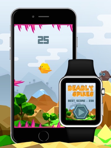 The gameplay is simple. Just keep tapping the screen to move the bird upwards, it comes downwards with gravity. You may also collect diamonds during the game to earn more points. Keep your bird alive as long as possible while avoiding spikes in order to achieve a high score.