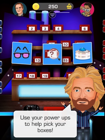 Deal or No Deal, but not as you know it! Answer thousands of fun trivia questions to unlock exciting power ups to help in your box picking game! Will you use the Hot Shelf or the X-Ray Vision to find those blue boxes? Pick your lucky box and spank The Banker in single player mode!