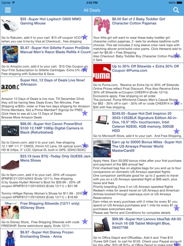 Nice app showing deals from where ever. Next version should have some search functions so you can narrow down to your desires. Happy shopping!