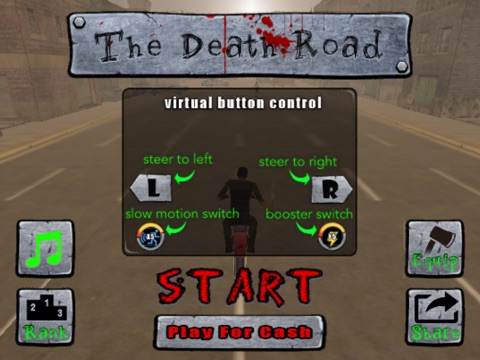 The Death Road is a realistic zombie endless running game. Player rides on the motorcycle through the street which invaded by the zombies, avoid cars and kill them. Hold your weapon, lets start adventure at the death road!