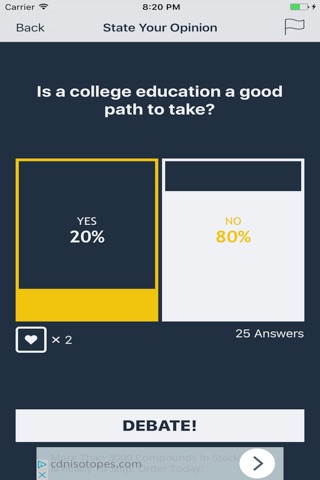If you want to, create your own debate questions and poll the other users on their opinions.