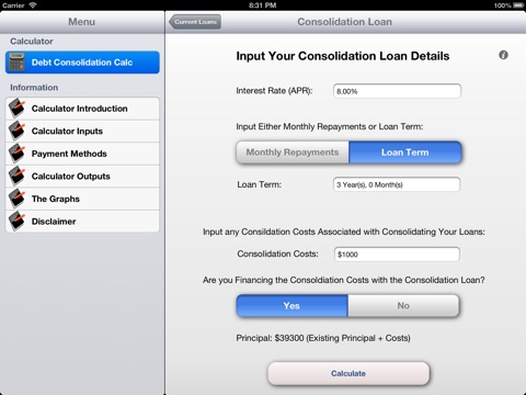 * Input the details of a debt consolidation loan and compare this to your current loans.