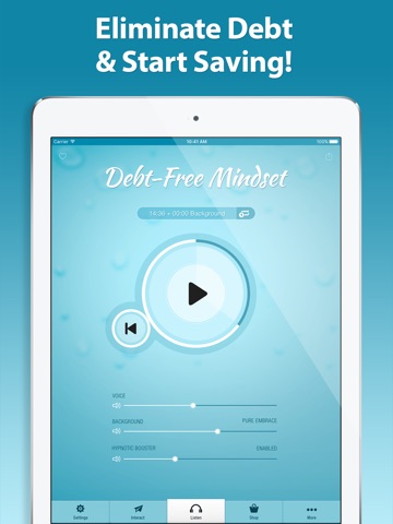 Debt-Free Mindset Hypnosis is free to try and effective with the default settings. A one-time in-app purchase is required only if you wish to change the default settings. (Each of our free hypnosis apps includes its own in-app purchase; in-app purchases cannot be shared among separate apps.)