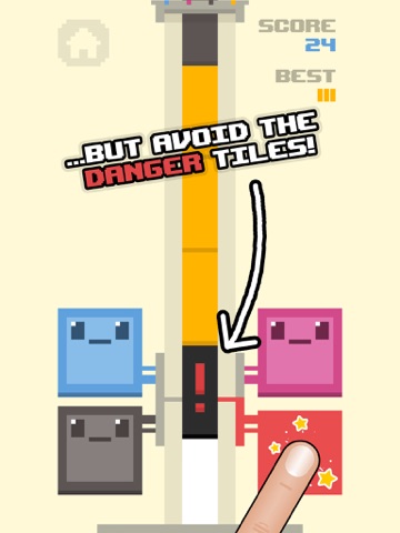 Click buttons to the corresponding tiles at the right time but beware the blinking red tile as it means an instant game over.