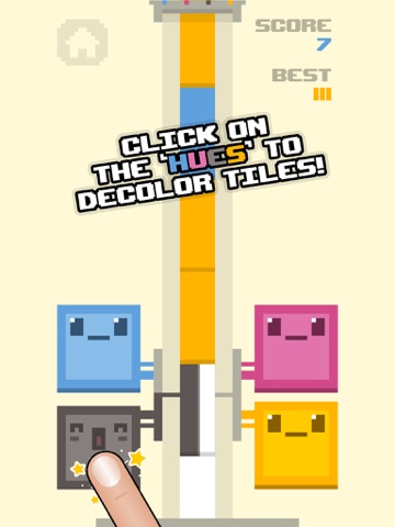 The goal of Decolor is to get the highest score possible by decoloring the falling tiles.