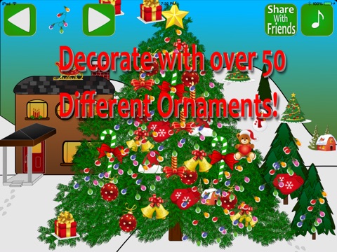 When youre all done decorating, Share your beautiful Christmas tree with all of your friends with easy to use built-in sharing functions for twitter, Facebook and e-mail. Save your creation to your photos and show all your friends!