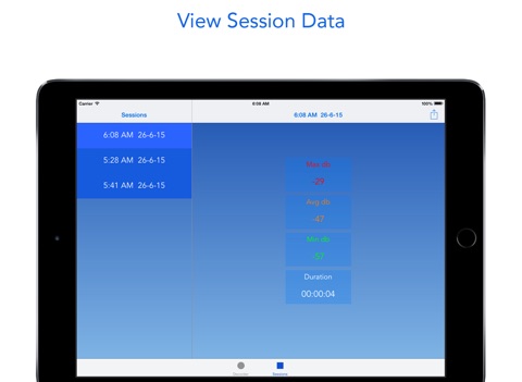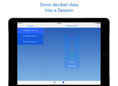 - Sharing via email, message, and others, with a text file of all the decibels and data received in the session with the data designed to be easily reusable.