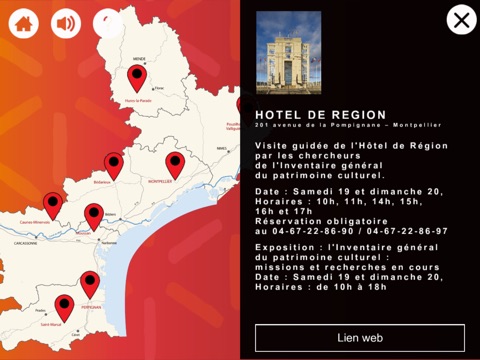 Découvrez le patrimoine de la région Languedoc-Roussillon dans toute sa diversité à travers une application ludique et didactique. Jeux, réalité augmentée, environnement 3D, panorama 360° et documents inédits vous permettront dexplorer le patrimoine régional de façon originale et attractive et vous révèleront lhistoire du quartier Antigone et de lHôtel de Région à Montpellier.
