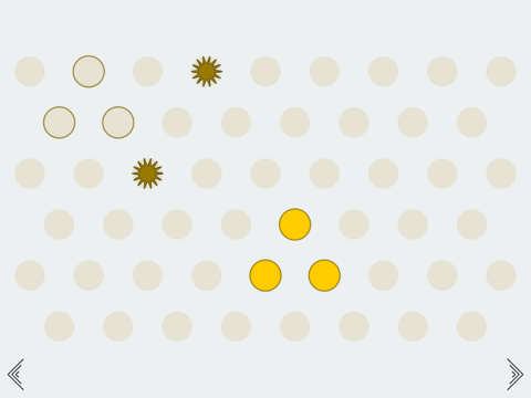 To solve a level you must find a sequence of taps that will move the filled circle to their places.