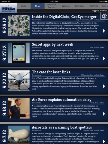 Coverage spans big data, unmanned aircraft, intelligence analysis, communications tech, privacy policies, homeland security and Afghanistan.