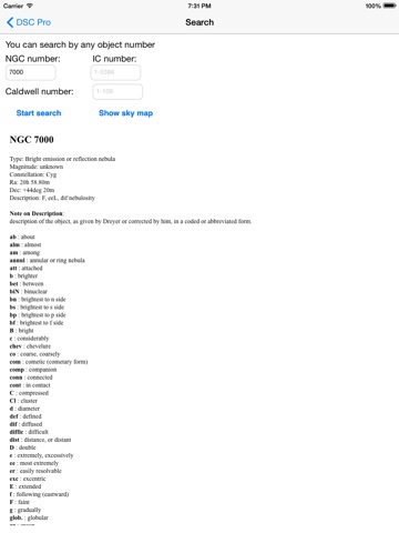 Deep Sky Companion Pro is a pocket encyclopedia on different objects in the outer space. With Deep Sky Companion Pro, you can get information on the most popular space objects. The Pro version has additional information on more than 10000 NGC, IC and Caldwell objects. A description and a search map can be shown for every object.