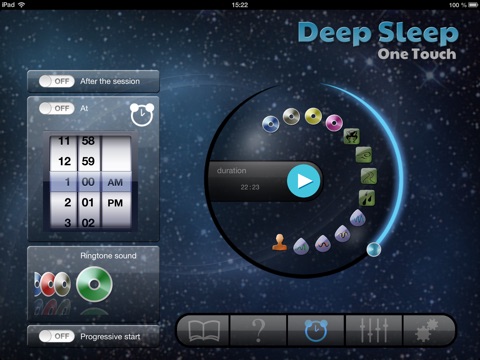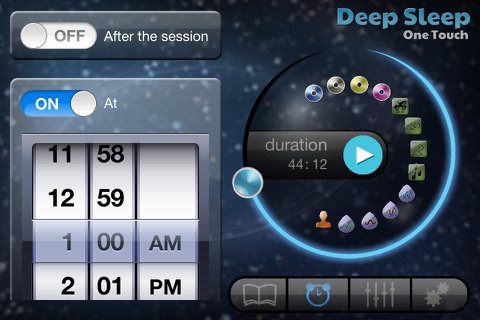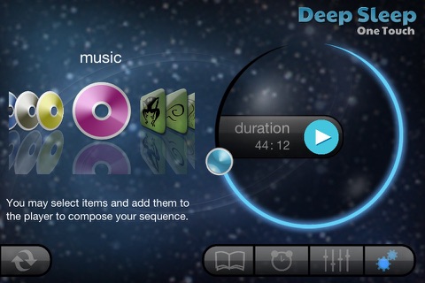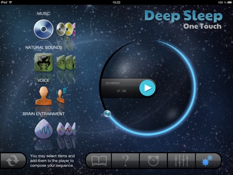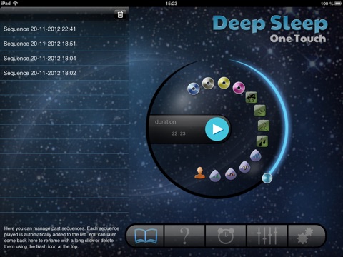 Just touch the play button. A session of deep sleep relaxation is composed in a few seconds.