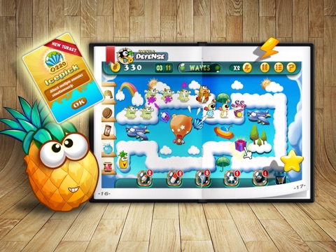 Pineapple Defense is a classic tower defense game.It has four beautiful themes,each theme has 10 levels.15 kinds of turrets and cute animals.You also have to collect items to unlock the item-collecting levels.