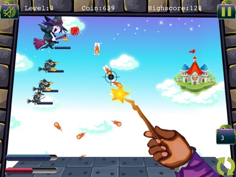 • Tap the wand to shoot, drag and aim for the witches