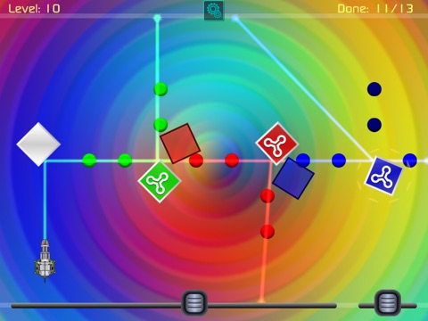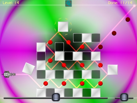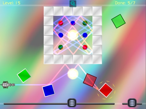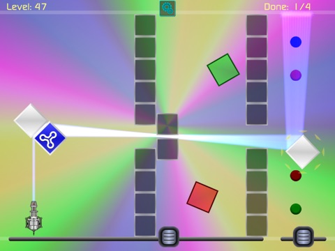 Drag and rotate the blocks to deflect the laser beams path to turn on all the lights.
