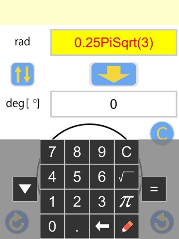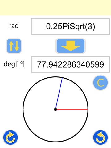 If degrees are entered converts to radians, and if radians are entered converts to degrees.