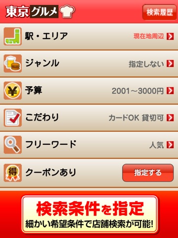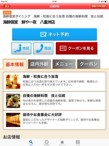 ・履歴検索、お気に入り機能も完備。別日に見ても、気に入ったお店がすぐ見つかります