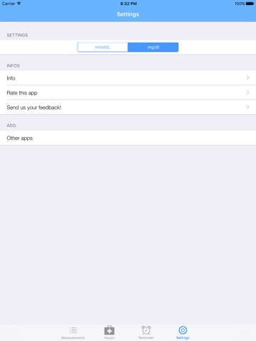 Die Idee ist ja gut, aber wo kann man Eistellunghen vornehmen. (z.B. mmol)