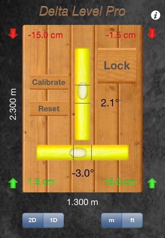 * Two operation modi, 2 dimensional to measure a surface like a slanting table and 1 dimensional to measure an object like a crooked picture frame.