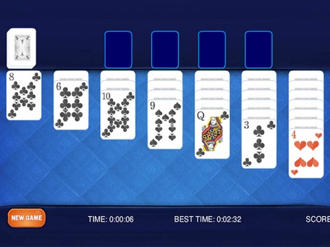 This game is crafted to fit all screen size from phone to tablet. The motive of the game is there are four foundations (light rectangles in the upper right) are built up by suit from Ace to King of the same suit. There are seven piles which can be built down by alternate colors (i.e. Red and Black), and descending in number starting from King to Ace.