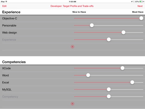 This app helps you make talent profile reports for recruiting new employees. Data is categorized by Client, then by Job, and then you are allowed to enter data about the perspective position available. You are able to rank client experience and competencies with sliders, and then once finished print or email a PDF containing the info.