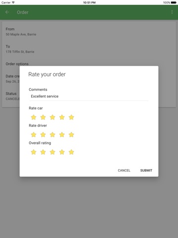 Give feedback to the taxi company about the quality of service you received.