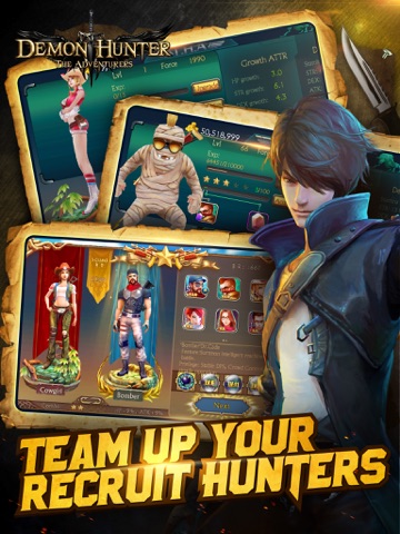 The most important thing in DH(Demon Hunter) is to create your own team on mobile, lead your hunters to explore your adventure map to the world wonders’. Don’t forget to collect hunter fragments to upgrade your team, it may help you get more treasures, vehicle will also make your hunter team bigger and stronger. The more adventures, the more treasures you will get.