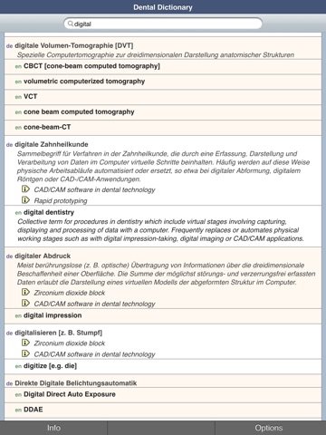 Search for German-English/English-German dental terms on your iPhone, iPad and iPod Touch! You will have access to terms from the extensive vocabulary of dentistry and dental technology listed at www.dental-dictonary.com and which is continually updated.