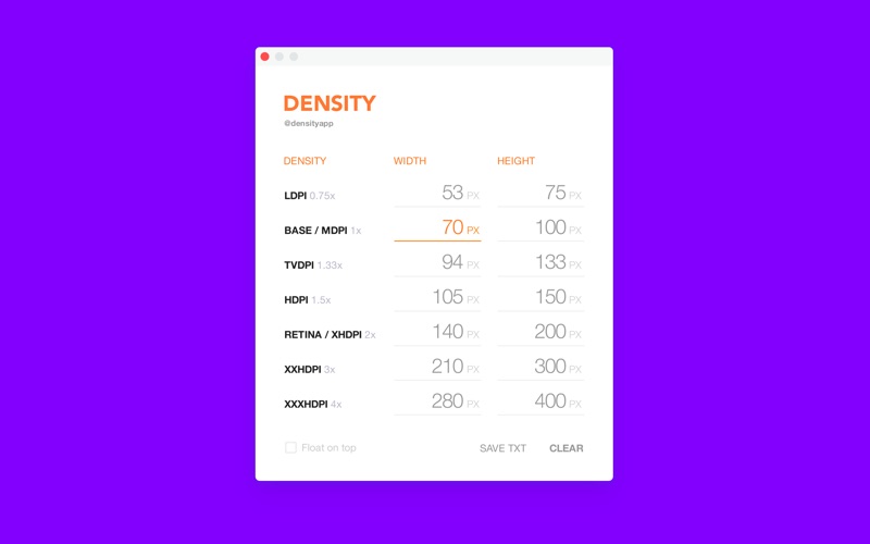 Density is a simple OS X utility app made for Designers & Developers to help them calculate the dimensions for multiple screen sizes.