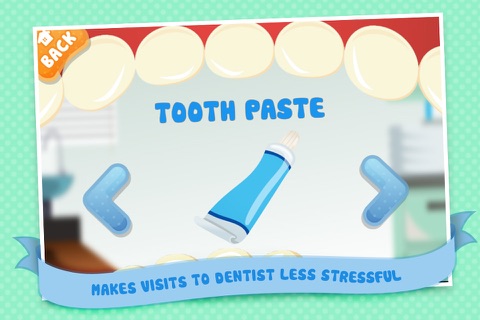 Dentist Office Edu Story is a game that aims on educating girls and boys on basic dental instruments in order to make dentist visits less stressful and oral hygiene more fun.