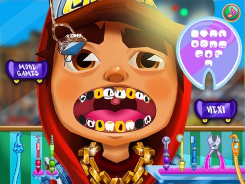 Jake fell and injured his teeth running from the authorities after a graffiti session. Now you have to be a great dentist and repare every tooth in Jakes mouth. Use all the medical tools, extract teeth and implant others until his smile is beautiful again.