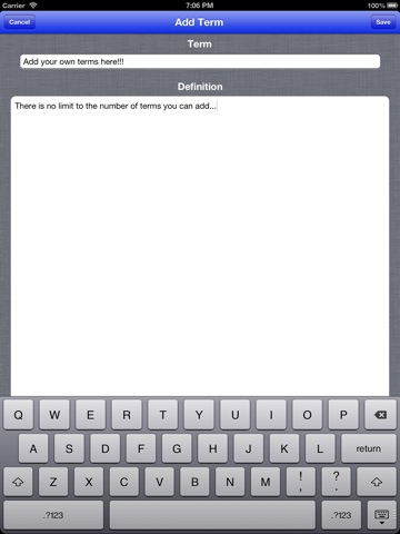Cant find what youre looking for in our library? NO PROBLEM!! You can now add your own terms to our dictionary for later reference!!