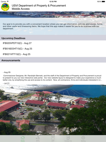 The US Virgin Islands Department of Property and Procurement Mobile Access app provides quick access to up to date information about the Virgin Islands Department of Property and Procurement. Find and view available project advertisements for the Virgin Islands Government. Receive push notifications when project advertisements are changed or when deadlines are near.