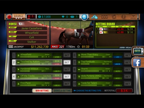 Horse race odds are updated real time. Hit big as much as 999 times.