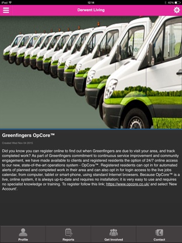 This App allows customers to submit reports on a range of topics, receive the latest news about Derwent Living, browse and apply for the latest available properties, and make payments via our online payment page.