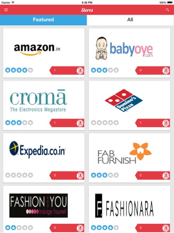 Users can find the Best Deals & Coupons from over 500 Indian online shopping stores such as Flipkart, Amazon India, Jabong, eBay, Snapdeal, Myntra, Freecharge, Paytm, Cleartrip, Yatra, Tradus, Homeshop18, Shopclues, Infibeam and many more