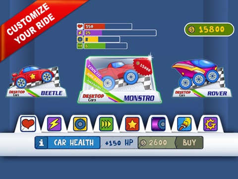 Four performance cars to choose from which you can upgrade and personalize to have the coolest car on the desktop