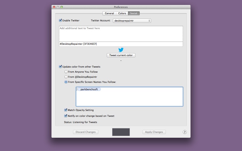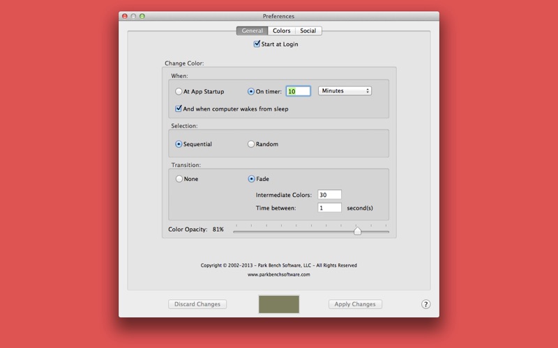 Desktop Repainter "tastefully" repaints your desktop, whether you prefer pure color, or augmenting your desktop pictures with some flair and variety. The colors can change over time to avoid monotony.