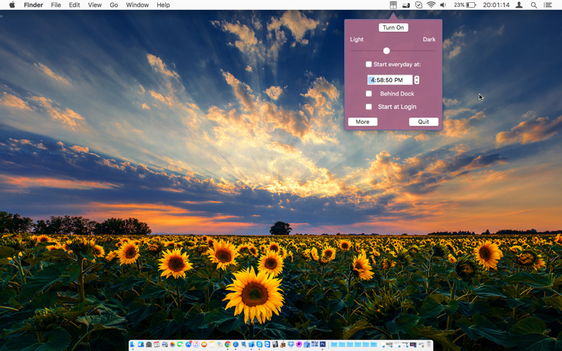 Desktop Shades helps you to reduce eye strain by dimming the screen much more than limit of your screen. Adjust the level of darkness as whatever you want.