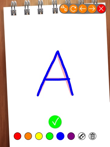 The app have a simple and intuitive interface to allow your kids to browse through all the letters of the alphabet at their pace and draw them with their fingers following an animated model. The app can evaluate the drawn letter to encourage the kid.